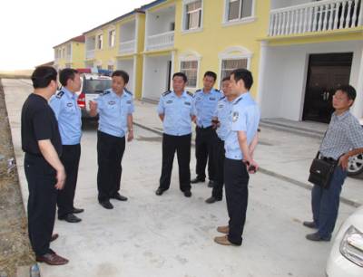 荆楚网潜江16日讯(通讯员周进城)为确保8月18日湖北省郧县青山镇首批移民安全顺利住进新房,16日下午,湖北省潜江市公安局副局长蒋代永(左三)带领市局有关部门人员,深入潜江市后湖农场移民点,现场研究安排部署移民搬迁时的安全保卫工作。2010-8-16