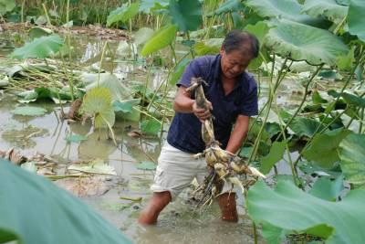 荷塘美景孕商机8月16日,业州镇松树坪村一组廖海猛的荷塘里,几位县城来的女孩正在欣赏荷花(图一),采摘莲蓬(图二)。松树坪村地处城郊,村民在政府引导下发展精细蔬菜和水生蔬菜,满足县城居民生活需要。镇农技服务中心从洪湖引进新品种指导藕农种植,藕农廖海猛种植了六亩藕,由于品质好,被县城超市订购,每天起一定量的藕(图三),然后按时送到超市。每亩产值5000-6000元,年收入可达3万余元,老廖笑谈:这是自己在给自己打工。如今一组、二组已发展150余亩。松树坪的藕已成为建始县蔬菜行业一块叫得响的品牌,也成就了一方美景。每到夏天,城里的游客会成群结队上松树坪赏荷花美景、品鲜藕佳肴,荷塘成就了一道美丽的风景线。点评:充分利用地理优势,发展适合当地实情的产业,走因地制宜的路子,使松树坪村的水产蔬菜逐渐做大、做强。一个地方选择一个产业,不能盲目,必须科学论证,群众才能够接受,也才能做到可持续发展。现在仅种藕就为村民增收近百万元,又为县城居民提供了休闲娱乐的场所。