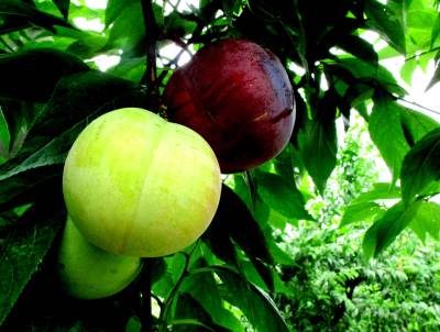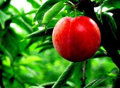 在一片绿野之中,一颗火红的李子挂在树上,成为”焦点”。一颗先熟的李子仿佛等不及另一颗成熟,”心”都碎了。