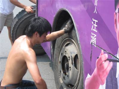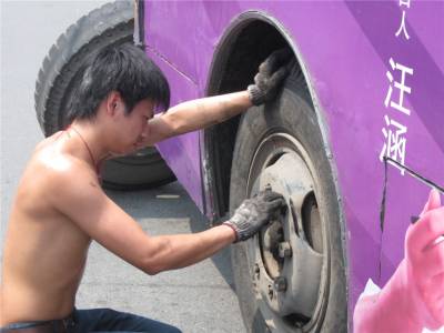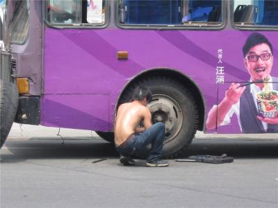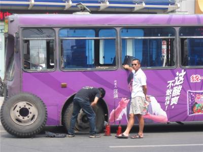 17日中午时分,在荆州市红门路津源宾馆门前,一辆24路公交车前轮爆胎,司机转移乘客,等待救援。不一会,公司救援车送来了一个小伙子和一个轮胎。小伙子搬来工具就开始工作。正午的烈日下,刷黑的马路上,气温至少有三十七八度。实在太热了,小伙子脱去上衣,光膀子干起来。他是那么专注,全然不顾浑身大汗,满身的阳光,那是青春的光芒在闪耀。半小时抢修完成。