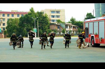 前两天到恩施体育运动中心去拍运动员训练,回来见武警消防官兵来训练,拍了一组图片.看见他们大热天穿着那么厚的服装,还要带几十斤的装备,一个个满头大汗的,很是让人感动.