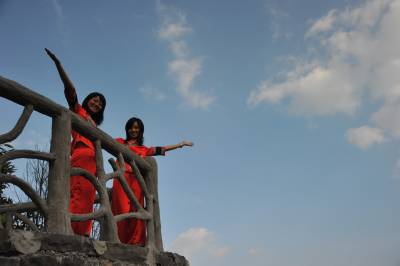 ”来,给家乡作宣传!”本报视界网刘波还有一个多月野三河景区就要正式开放啦!二十来天风味独特的”关口葡萄”就要上市啦!而慕名远道来的客人一拨一拨的,先睹为快;景区、特色民居和农家乐建设如火如荼,迎客准备有条不紊,生态观光农业精品示范区正待揭开神秘的面纱。8月13日,按奈不住喜悦的建始县花坪乡的几位姑娘结伴而行,不由自主给家乡作起宣传来(图一)。她们说沿富有民族特色的葡萄廊楼牌进入数千亩风味独特的”关口葡萄”基地,一定要到一颗上百年的葡萄王树下看看(图二),让后摘葡萄、尝葡萄、吃农家乐(图三),趁着兴趣沿葡萄长廊登上黄鹤桥石峰林山顶振臂高呼一声(图四),一切倦意消失殆尽,陶醉、留恋,真不虚此行!采访手记:抢抓”两路”开通和鄂西生态文化旅游大机遇,走可持续发展之路,把旅游与特色产业融合在一起,因地制宜打造生态观光农业,实现一产带动多产、多产引领一产的良性互动和经济效益叠加效应,使生态旅游观光农业真正成为新农村建设的一大亮点,这一顺民意合发展之举,怎能不让淳朴的山民为之兴奋呢?几位按奈不住喜悦的山里姑娘主动为家乡作宣传无不是最好例证!建始新闻中心刘波联系电话13032794298