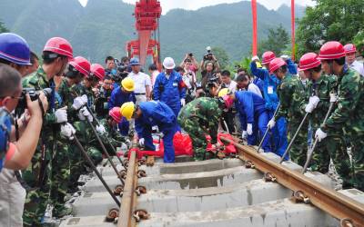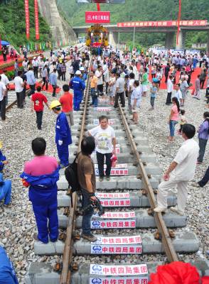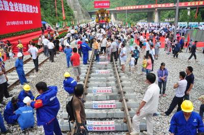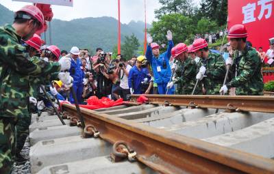 2010年8月18日日10时18分,有着”桥隧博物馆”之称的宜(昌)万(州)铁路最后一段轨排,在湖北省恩施土家族苗族自治州白果接轨点顺利实现接轨。至此,这条中国铁路史上施工难度最大的山区铁路全线铺轨贯通。据了解,宜万铁路将于年内通车。届时,川渝鄂地区出行至武汉、南京、上海的时间将缩短到5至9小时。宜万铁路2004年全线开工,总投资225亿元,是一条以客运为主、兼顾货运的I级电气化铁路干线。铁路全长377公里,东起湖北省宜昌市,西至重庆万州区,是进出川渝鄂西的东线通道,是中国”中长期铁路网规划”中”四纵四横”和沪汉蓉快速铁路客运通道的重要组成部分。其中,宜昌东至凉雾段288公里为双线,设计时速为160公里。凉雾至万州段89公里,设计时速为120公里。