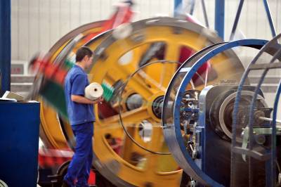 2010年5月18日,湖北省宜昌市夷陵区长江高科电缆公司的工人在生产车间加工电缆。该公司开发的智能监控型电力电缆,能为用户提供准确的故障位置,这种新产品新技术被认定为省级重大科技创新成果,获国家专利。近年来,夷陵区各行各业加速自主创新和科技成果转化应用。2009年,夷陵区通过企业自主创新和科技成果转化应用,实现新技术产值34亿元、附加值11亿元。视界网签约摄影师张国荣摄