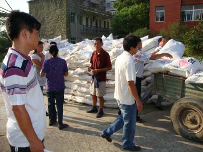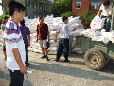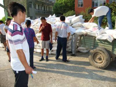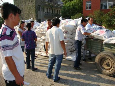 8月19日,一个让汉川市麻河镇受灾农民高兴的日子——湖北省农资公司向该镇受灾村送来了20吨优质尿素,并将免费发放到受灾村民手中。各村民小组一大早就派人来领尿素,镇委大院里挤满了准备拉肥的拖拉机。图为肥料分发现场。通讯员邹开建摄影报道通联:汉川市麻河镇党政办公室电话:13197382491