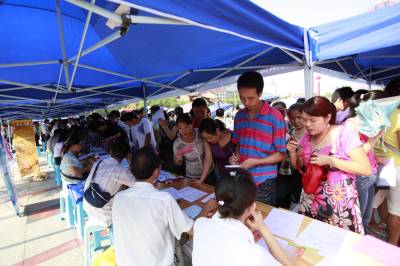 暑热难抵求职潮8月19日,许多求职者冒着酷热参加就业援助招聘会。当日,”湖北省2010就业援助特别行动”在宜昌市启动。60多家用人单位进场招聘,提供各类岗位6000多个,包括2000个针对就业困难人员的岗位,以及1200个公益性岗位。据了解,湖北省拨6亿元专项资金用于启动”就业援助特别行动”,全省设置了10万个公益性岗位,现场接受就业困难人员的报名。本报视界网黄翔摄