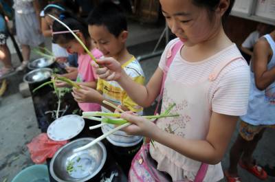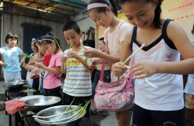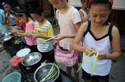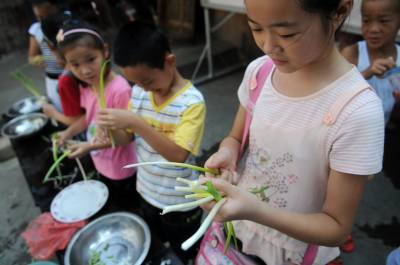 剥葱比赛8月19日,万户社区组织辖区小学生举行剥葱、洗碗、洗衣服等比赛,并教授家务常识,让孩子们尝试干家务,体验家长的艰辛。