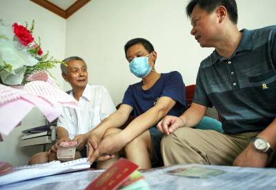 8月13日,孝感市中心血站工作人员为白血病患者杨立成送去了为其报销的1.043万元血费。孝感二三八厂职工杨立成患病之前曾3次无偿献血共计1200毫升。按《孝感市献血管理办法》规定,无偿献血累计1000毫升以上的,本人终身免费享用不限量的医疗用血。截至目前,孝感市献血量达到1000毫升以上的共有10380人,其中2385名献血者报销血费共计114.46万元。签约摄影师晏美华摄