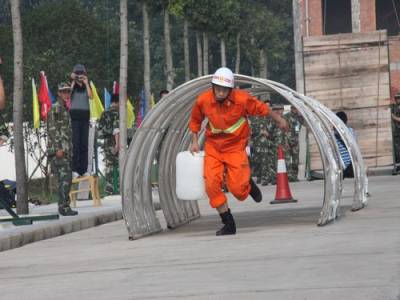 红门健儿斗酷暑消防铁军展英姿19日,参赛选手们在进行消防铁军比武竞赛。18日至19日,汉江公安消防支队打造公安消防铁军比武竞赛在天门公安消防大队举行,来自天门、仙桃、潜江、神农架林区和江汉油田的公安现役队、企业专职队的8支代表队100余人进行了消防铁人、100米消防障碍、一人两盘水带连接、百米双干线供水操、初战快速出水控制操等10个科目的较量。(本报视界网刘银斌摄)