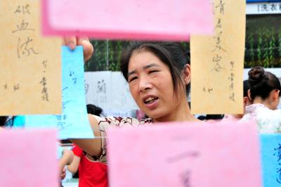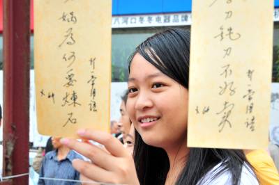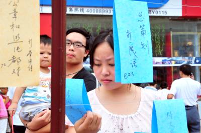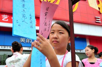 2010年8月21日,在湖北省宜昌市夷陵区乐天溪镇第五届新农村文化科技体育节上,八河口商贸街上的猜谜语活动吸引了众多三峡移民和农民及学生参与,活动主办方对猜对三条谜语者给予一只节能灯奖励。本报视界网张国荣摄