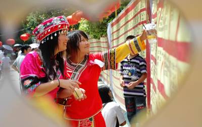8月21日,两名土家族姑娘在”土家女儿会”上找伴侣。当日,被誉为”东方情人节”的恩施土家女儿会在湖北省恩施市民族广场浓情上演,一万五千余名单身青年男女参加这场传统相亲活动。据悉,恩施土家女儿会已有300多年历史,是恩施土家族独特的民俗文化,是土家族单身青年在追求自由婚姻过程中自发形成的以择偶为主要目的的相亲盛会。