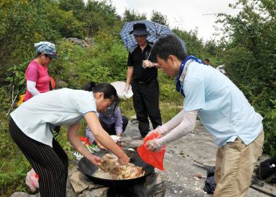 韩国游客赴长江三峡徒步旅游传播友谊(图)8月21日,10名韩国籍游客正在巴东县信陵镇老屋场村野炊,与当地居民同欢乐。当地时间20日,10名韩国籍游客来到巴东县,坐船至巫山县青石镇,徒步观看了神女峰,游览了链子溪。他们每到一处,都与当地居民打得火热,为韩中友好奠定了坚实基础。(视界网签约摄影师梁勇摄)通联:巴东县官渡口镇政府外宣办电话:13986846069座机:0718-4463573