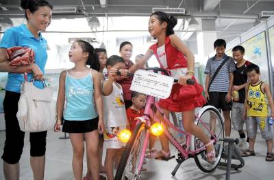 留守儿童体验科技生活22日,中国十五冶金建设四公司工会组织部分留守儿童到黄石市科技馆体验科技实验,丰富他们的暑期生活。据了解,该公司工地分布在全国各地,有的甚至远在国外,而员工的子女绝大部分都留在黄石。为丰富他们的暑期生活,让员工安心工作,工会每年寒、暑假都组织这些留守儿童开展各种有意义的活动。图为留守儿童正在体验科技馆的脚踏车发电。黄石市黄石日报摄影部邱孝威摄邮编:435002电话:13807232603