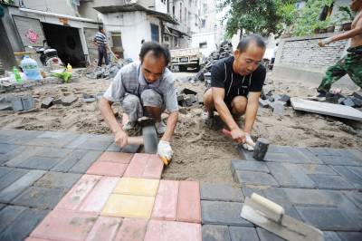 宜昌市政府在创建全国无障碍建设城市中动真格、下真功夫,对城区内的需要进行无障碍改造的社区逐一进行排查,并纳入改造计划。8月23日上午,宜昌首个无障碍社区伍家岗区沈家店社区改造工程已经完成工作量的40%,完成改造面积4800平方米。沈家店社区改造将着重对盲道、无障碍坡道、无障碍停车位、无障碍公厕、无障碍标志等进行建改。此外,还要将社区中心和老年人活动中心里增加无障碍厕位;在道路进出口、停车场、坡道、公厕等设施前设置无障碍标志,整个改造将斥资211万元,预计9月底完工。记者刘曙松摄