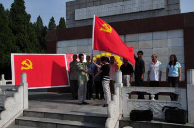 8月21日,湖北省郧县城关镇牧场沟村党支书记龚万梅一家与村里60户248名移民顺利抵达武汉市蔡甸区。龚万梅是全县30264名外迁移民中唯一的一名村党支部女书记,她出生于1960年,1997年7月入党,先后担任过村党支部委员,会计等职务,2008年11月担任牧场沟村党支书记后带领全村修通了一组和二组的断头路,完成75.7亩坡改梯水土保持工程,更换管道解决吃水难问题,为30户村民修建沼气池。为搞好党支部的交接工作,7月1日在党的生日这天龚万梅带领村党支部成员在郧阳革命烈士陵园的纪念碑下面对鲜红的党旗举起右手重温党的哲词,并举行了党旗交接仪式,并嘱咐新的党支部带领村民发展经济共同致富。7月5日,一座高3层建筑面积650平方米计18间办公室和电教中心的牧场沟村新办公楼落成,原办公室是60年代因丹江口建坝畜水发电而后靠重建的砖木结构,经过近40年的风风雨雨己成危房,南水北调中线工程实施后村办公室又在172水位线以下,最终决定投资80万元建新办公楼,最终实现了村支书龚万梅的心愿。移民外迁工作实施以来,村支书龚万梅几乎没有睡过安稳觉,对思想抵触情绪较大的村民进行苦口婆心的做思想工作,由于村支书龚万梅家的地和房子都在在172水位线以下,她也是移民搬迁之例,相对来说工作也好做一些,为选好移民安置点她带上每户外迁移民家庭代表最后选定在武汉市蔡甸区张湾镇黄土坡。8月20日是牧场沟村60户外迁移民搬迁装车的日子,这一天她把自家搬家装车的任务交给了丈夫杨天献和孩子,自己却忙在了其它搬迁户的装车工作上,并安排丈夫押运货车至武汉市蔡甸区安置地。21日龚万梅与248名移民乘坐7辆客车离开了郧县,由于连日的劳累龚万梅晕车历害,但到了安置点她一下车又忙着移民卸车工作上了。图1为7月1日龚万梅带领党员在烈士碑下重温党的誓词时的情景。图2为烈士碑下的党旗交接仪式。图3为谈到就要离开家乡时龚万梅流下了不舍的眼泪时的情景。图4为龚万梅(右)为新办公楼落成揭牌时的情景。图5为龚万梅(中)与儿子杨斌斌(右)女儿杨欢欢(左)在中途休息时在客车旁的合影。周家山杨文华摄湖北省郧县城建监察大队电话13872840078邮编442500