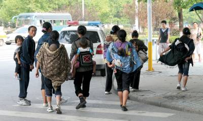 背着娃娃去乞讨23日,黄石市街头一群来自外地的妇女每人身背一个娃娃准备去行乞。据一名旁观妇女介绍,她们都来自外地,说的话听不懂。她用普通话问其中的一名妇女说,黄石有救助站,如果有困难可以到那里寻求帮助,可妇女表示她们不去救助站,反向她讨要2元钱。黄石市黄石日报摄影部邱孝威摄电话:13807232603邮编:435002