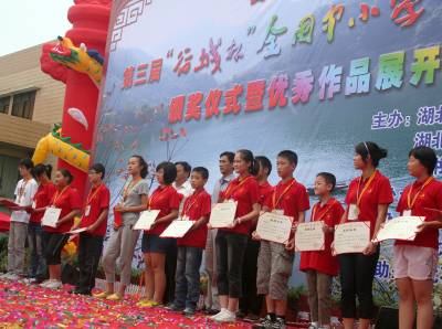 第三届”谷城杯”全国中小学生书画大赛颁奖仪式暨作品展览开幕。开幕式8月23日上午在谷城宾馆举行。参加人员有在书画大赛中获奖的中小学生代表及优秀指导老师的代表。此次书画大赛共收到来自全国各地以及港台、马来西亚等地区和国家的书画作品3万余件。共评出金奖作品200件,银奖作品800件,铜奖作品2000件。谷城兴办这样全国性的书画艺术盛会,旨在以书画会友,为海内外中小学生提供一个学习、交流、展示的平台。提升少年儿童的美育素养。另一方面,通过这种书画艺术活动,向全国宣传谷城,推介谷城。在全国文化舞台上展示谷城的生态、经济、文化的新形象。