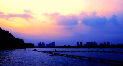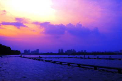 乘一叶小舟飘泊东湖上,看晚霞燃烧蔓延,天地间是一片壮观的磅礴的辉煌美丽。