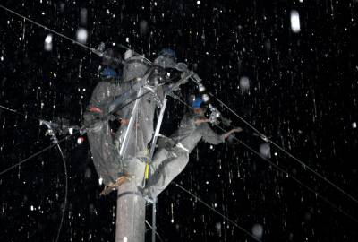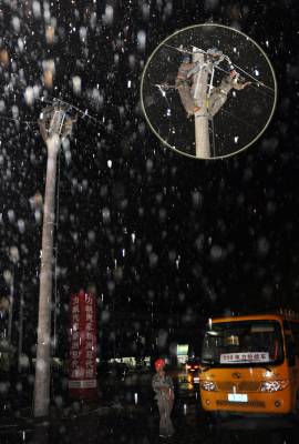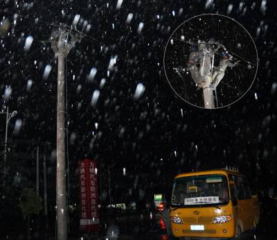 23日晚6时,一辆重载货车(俗称后八轮)在新洲区邾城街龙腾大道撞断一根10千伏电杆,并拉断(坏)相邻的5根电杆,造成城南地区大面积停电。新洲区供电公司闻讯后迅即展开修复工作。24日晚8时许,当抢修工作进入架线收尾的关键阶段,突降大雨,为争取尽早恢复供电,抢修人员冒雨奋战,于当晚9时许恢复电力供应。