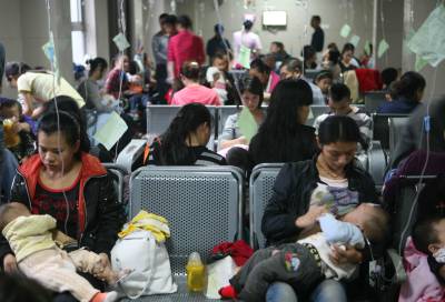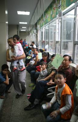 处暑过后,受冷空气南下影响,湖北省襄樊市气温骤降10余摄氏度,令许多儿童一时不适,襄樊各大医院前来就诊感冒、发热、肺炎、腹泻等患儿显著增加,出现患儿扎堆的景象,仅该市第一人民医院儿科门诊量增加近五成。据医生介绍,在夏秋季节交替时,由于温度变化太快而引起儿童发病,提醒家长要及时为小孩增添衣物。