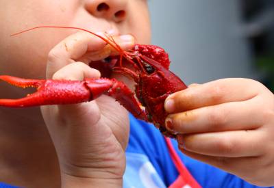 2010年8月25日,湖北襄樊,一位市民品尝美食小龙虾。湖北省政府日前召开会议提出,各地要从保护生物资源多样性角度出发,对天然水域的小龙虾采取禁捕措施,每年9月1日至12月31日定为”禁虾期”。市水产局有关人士介绍说,此次”禁虾”只限于天然水域,人工养殖水域不在”禁虾”之列。对禁捕期违规作业者,水产部门可处五万元以下罚款。