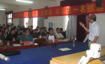 湖北大学教授为山乡教师讲课8月25日,是安陆市王义贞镇暑期教师培训的第6天,也是该镇225名教师认为最精彩、最充实、最有收获的一天:湖北大学MBA教育中心主任、商学院教授郭志文和孝感学院教授、副院长丁远坤为全镇教师作了两场精彩、丰富、高深的学术报告。能够把省城专家教授请到老区山乡为老师们讲课,这在王义贞镇还是头一回。老师们深深感到受益匪浅。签约摄影师:王代金