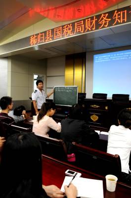 8月26日上午,秭归县国税局”财务知识大讲堂”开讲,来自国税分局的四名青年干部大胆地走上讲台,为全县国税系统百余名干部讲授财务知识。授课结束后,该局还将举行统一的现场考试,评定与会者的学习成绩,统一计入干部的工作考核档案。自今年7月份以来,该局正式启动”青年干部综合素质提升工程”,让青年干部自报课题、自己利用业余时间制作课件、轮流上讲台授课,以此来提升他们的综合素质。目前,一种”比学赶帮、创先争优、共同进步”的良好学习氛围正在该局悄然形成。本报视界网王爱平通讯员杨凯摄作者单位:秭归县广播电影电视局联系电话:13487250823邮政编码:443600电子信箱:wangaiping19731127@163.comQQ号码:248545598