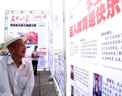 7月2日,为庆祝东楚晚报创刊15周年,东楚传媒集团举办了巨型报展活动,一位102岁的老人也被吸引,高兴地参观了巨型报展。