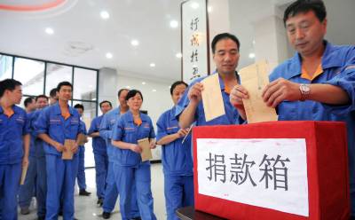 灾难无情人间有爱27日,中国十五冶七公司工会组织全体机关干部为舟曲特大泥石流灾区人民捐款献”爱心”,当日共捐款8070元。 8月7日,甘肃省甘南藏族自治州舟曲县突降特大暴雨,引发山洪泥石流灾害,造成了重大人员伤亡和财产损失。为帮助灾区人民战胜灾情、重建家园、恢复正常的生产生活,该公司干部带头捐款,为灾区人民献出一份爱心。据悉,公司分布全国各地的项目部也在开展为灾区人民捐款献”爱心”活动。黄石市黄石日报摄影部邱孝威摄电话:13807232603电话:13807232603