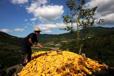 竹山玉米喜获丰收8月27日,竹山县官渡镇吉鱼村农民毛道福在晾晒玉米。据了解,竹山县今年推广良种玉米种植,全县27万亩玉米喜获丰收。(本报视界网章磊摄)地址:竹山县交通局章磊电话:15972574118