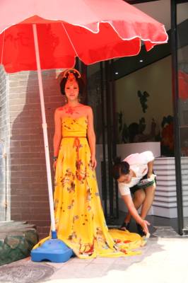 时下我市婚纱摄影行业的竞争日趋激烈,各影楼使出多种招数招揽顾客。在江汉路,一影楼派员工在门前免费发放餐巾纸,吸引路人进店(图一)。中山大道民众乐园旁的影楼橱窗里,真假模特同窗展示,吸人眼球(图二)。保成路口某影楼干脆让模特立于门前,作直观展示(图三)。张垠摄于28日江汉区园林局430022