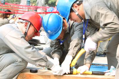企业的发展,离不开职工8月28日,宜昌供电公司在培训中心举办了职工技能运动会,全公司有300多名职工参加了为期两天的比武活动,为充分贯彻执行上级的要求,一改过去”少数人练、少数人比、多数人看”的不足,形成全员大培训、大练兵、大比武的氛围。分五个项目进行个人比赛,如:电能计量装置现场检验、10KV开关及线路检修停送电、台区电缆头制作、110KV更换绝缘子、汽车驾驶。通过这样的比赛让更多职工加入到学中去,让他们有用武之地,也让他们更好的为企业服务。如图:职工在比赛的情况。