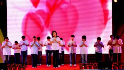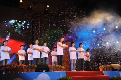 8月28日晚,由州广播电影电视局、共青团恩施州委、恩施电视台主办、华龙集团、恩施移动公司联办的”恩施骄傲——助飞行动”壮行晚会在州民族体育馆举行,图为受资助学子齐唱《感恩的心》。据了解,”恩施骄傲——助飞行动”大型电视公益活动旨在吸纳社会公益资金,资助每年高考分数达到国家一本重点线以上、且经国家重点大学录取、确定入学的特优特困新生,同时奖励全州及八县市文理状元。活动自今年7月正式启动以来,受到社会各界普遍关注,华龙集团、恩施移动公司、广东省恩施州商会、恩施州好又多商贸公司享买乐连锁超市、恩施华硒生态农牧业有限公司、恩施卷烟厂、州烟草公司等企业、团体及个人共为此次活动捐款78万元。晚会上,王兆淼、向茜等来自全州的16名特困特优大学新生分别获得了2万元资助,全州及8县市18名文理科状元分别获得了笔记本电脑等奖励,同时,受助学生及文理状元均获得活动组委会授予的”恩施骄傲”荣誉。
