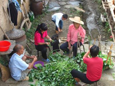 多余薯叶变钞票(通讯员:柯常武单位:十堰市郧县安阳镇政府邮编:442515电话:15571900508)8月29日下午,郧县安阳镇西堰村的一户农民正在摘红薯叶。近期,受洪灾等因素影响,郧县蔬菜减产,菜价飞涨,许多农民将地里过密的红薯藤剪回,摘下叶子到菜市去卖,每斤可卖到1.5元以上,为家里增收不少。