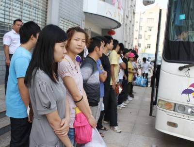 今年中、高考录取过后,部分落榜毕业生已经成为求职大军中的主力。孝昌劳动部门针对这些落榜毕业生,宣传”阳光工程”的政策和好处,动员不再求学的应届初高中毕业生参加技能培训,然后推荐就业。图为8月30日上午,40多名经过培训的孝昌应届初高中毕业生赴武汉富士康就业,不少学生家长前来相送。宋俊初摄