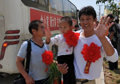 8月30日上午12:22分,随着来自湖北省郧县柳陂镇64户282名移民进住随州市随县唐县镇附中移民点,当日中午来自郧县柳陂镇辽瓦村,韩家洲村,黎家店村303户1352名的移民进住随州市随县4个镇(场)7个安置点,同时也是郧县外迁移民人数最多的一批。图为来自郧县柳陂镇的移民当日中午高兴的进住唐县镇附中移民点时的情景。周家山杨文华摄湖北省郧县城建监察大队电话13872840078邮编442500