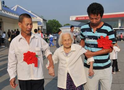8月30日中午随着湖北省郧县柳陂镇303户1352人移民进住随州市随县4个镇(场)7个移民安置点,郧县外迁移民人口突破12400余人,占全县外迁人口总数30264的三分之一。图1为30日82岁的郧县柳陂镇黎家店村7组移民陈新菊在儿孙的帮助下在武当山服务区散步时的情景。图2为30日中午来自辽瓦村8组刘长军一家在唐县镇附中安置点的新家门前合影时的情景。周家山杨文华摄湖北省郧县城建监察大队电话13872840078邮编442500