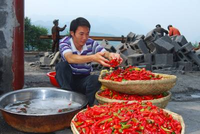 8月30日,巴东县金竹园煤矿公司的一名厨师正在洗辣椒。他说,现在煤矿工人的日子过得像辣椒一样红红火火。近几年,该煤矿业主加大了矿区的设施投入,让工人住进了新修的小洋楼,添置了电视机等文化用品,每年向工人食堂投入10多万元补贴费,让工人生活过得丰富多彩。田植峰摄