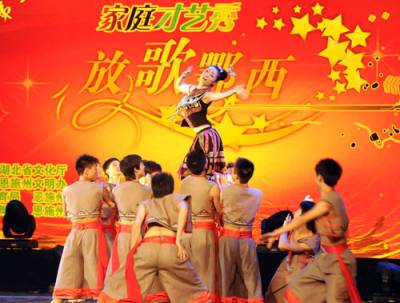 8月30日晚,第三届湖北省文明家庭风采展示大赛”放歌鄂西·家庭才艺秀”在恩施州民族礼堂举行。省妇联主席梁惠玲、副主席叶景丽,省文化厅副巡视员吴宪观看了比赛并为获奖家庭颁奖。此次大赛由省妇联、省文化厅、省文明办联合主办,旨在展示全省家庭文明建设成果,推进文明家庭创建活动深入开展。大赛主赛场设在我州,省内各市分别设分赛场,经过激烈角逐,来自鹤峰县的孟令波家庭从参赛的7个家庭中脱颖而出,最终摘得桂冠。作为承办方的湖北省民族歌舞团为大赛带来了舞蹈《追太阳》、《土家阿哥苗家妹》、《土家女儿会》,曲艺《家乡美》等精彩节目,为大赛增色不少,赢得了主办方的一致好评。