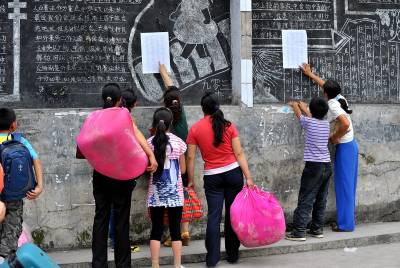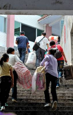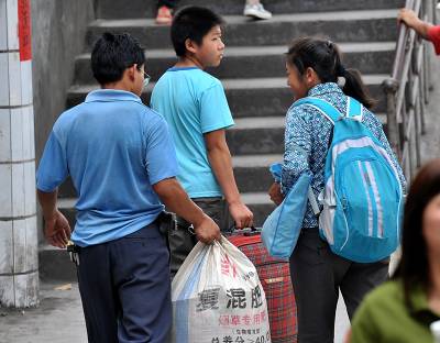 > 亮丽风景:农民家长”求学”的背影