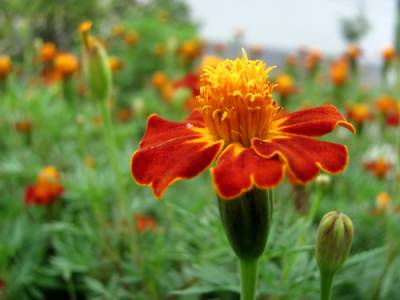 8月27日上午拍摄于郧县虎啸滩风景区。红艳的太阳菊在秋风中傲放,似一簇簇火焰在尽情燃烧。