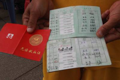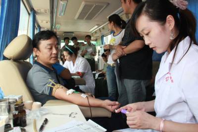 8月31日,嘉鱼县团委和县红十字会联合发起无偿献血活动。来自该县实验中学的陈军老师说:”今天本来还想献,可医生说我一周前才献过,今天不能再献了!”翻开陈军的厚厚的一摞献血证,笔者发现他献血总量已达1.2万毫升,累计参与献血50多次。据该县红十字会负责人透露,当日共接受无偿献血约3.5万毫升。(本报视界网耿海军摄)