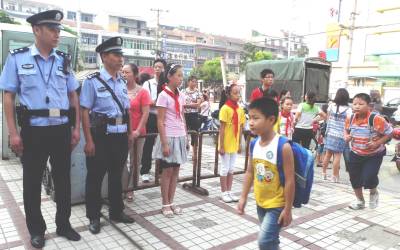 9月1日是武汉市中小学幼儿园新学年新学期开学的百万中小学生幼儿入校园首日。当日早晨,市公安局巡警支队和江汉区公安分局汉兴街派出所的干警,按照各自的责任分工,在大兴路小学新华家园分校内外,进行巡逻护守,他们的爱民行动,让师生们愉快入校,家长们放心校园,为社会学校家庭撑起了安全伞。