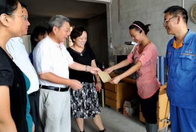 助学金送到困难职工家9月1日,中国十五冶金建设公司工会干部将1000元助学金送到困难户郭永红的女儿手上,为她上大学尽一份责任。郭永红是该公司一名普通员工,2009年在工会及全体员工的资助下进行了换肾手术,家庭条件比较困难。今年他的女儿考上大学,工会又为他伸出援助之手。黄石市黄石日报摄影部邱孝威摄电话:13807232603邮编:435002