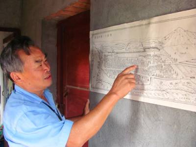 9月1日下午,郧县安阳镇西堰村四组的退休老教师王世成向笔者解说他最近用钢笔画再现的一代哲人杨献珍故居安阳口古镇的全景图。一度拥有”小汉口”之称的安阳口古镇,在丹江口水库建坝后沉入江底,从小在那里居住爱好美术的退休老教师王世成凭着记忆,用钢笔画再现了古镇繁华的景象。
