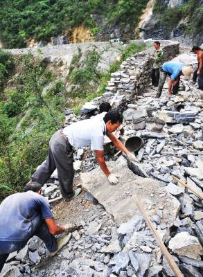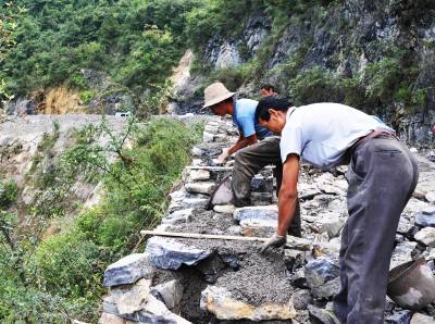 巴东枫香树沟筑”长城”(图)9月1日,民工正在巴东县官渡口镇凉水井村枫香树沟砌”长城”。据了解,枫香树沟位于谭家梁子,该地悬崖峭壁,山高坡陡,是交通事故频发地段,为了使司机、群众安全出行,该镇挤出资金2万多元,在危险处修起了长200米、高1.2米、宽0.8米的防撞墙。(视界网签约摄影师梁勇摄)通联:巴东县官渡口镇政府外宣办电话:13986846069邮编:444309