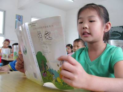 9月1日,郧县新区小学三(3)班的学生黄紫菲正在教室里朗读新领到的免费教科书。国务院自2008年秋季学期开始,在全国范围内全部免除城乡义务教育阶段学生学杂费,这项民生工程今年惠及了该县8万余名中小学生。(郧县新闻宣传中心曹忠宏张俊摄)