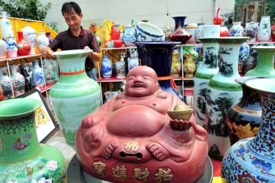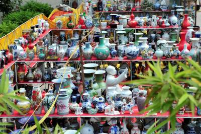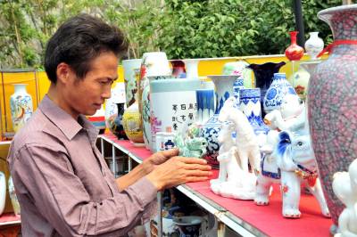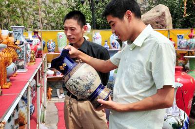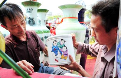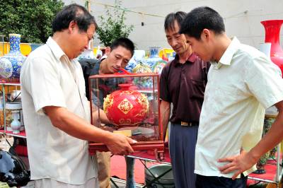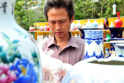 2010年7月20日,江西景德镇两家瓷器经销商来到湖北省宜昌市夷陵区搞起瓷器展销会。40多天过去了,在夷陵城区神仙湾的露天展场,瓷器依然摆满了货架,满眼的瓷器展台里竟然看不到几个人,遭受了宜昌市场一股始料未及的”冷遇”。 ”一个多月仅卖了30多件,路费都不够。”瓷器经销商老板刘先生和王先生望着销不出去的瓷器显得十分无奈。两位瓷器经销商说,之前在宜昌中心城区展销了一个月,遭受”冷遇”后来到夷陵区,没想到销售情况一样糟糕。面对进退两难的尴尬局面,他们将再坚持半个月时间,希望情况有所好转后,再作最终去留的决定。本报视界网张国荣摄