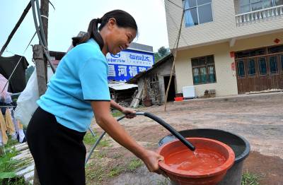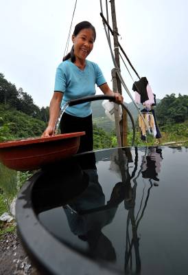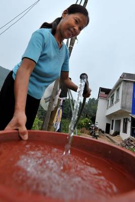 9月4日,湖北省恩施土家族苗族自治州宣恩县七里桥村一农妇望着自家刚引来的自来水脸上乐开了花。而在恩施山区,能够象这样用上安全水的农民已有120.3万人。据9月2日在恩施州政府在建始县长梁乡杨扎营村召开的全州农村饮水安全工程建设现场会上传出的消息:”十一五”期间,国家共为恩施州投入资金4.88亿元解决农村居民安全饮水问题。本报视界网宋文摄