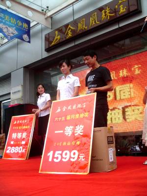 4日,黄石金凤凰珠宝举办第65届月度抽奖活动,一张姓男子抽得头奖(价值2880元的钻戒一枚),十分高兴。